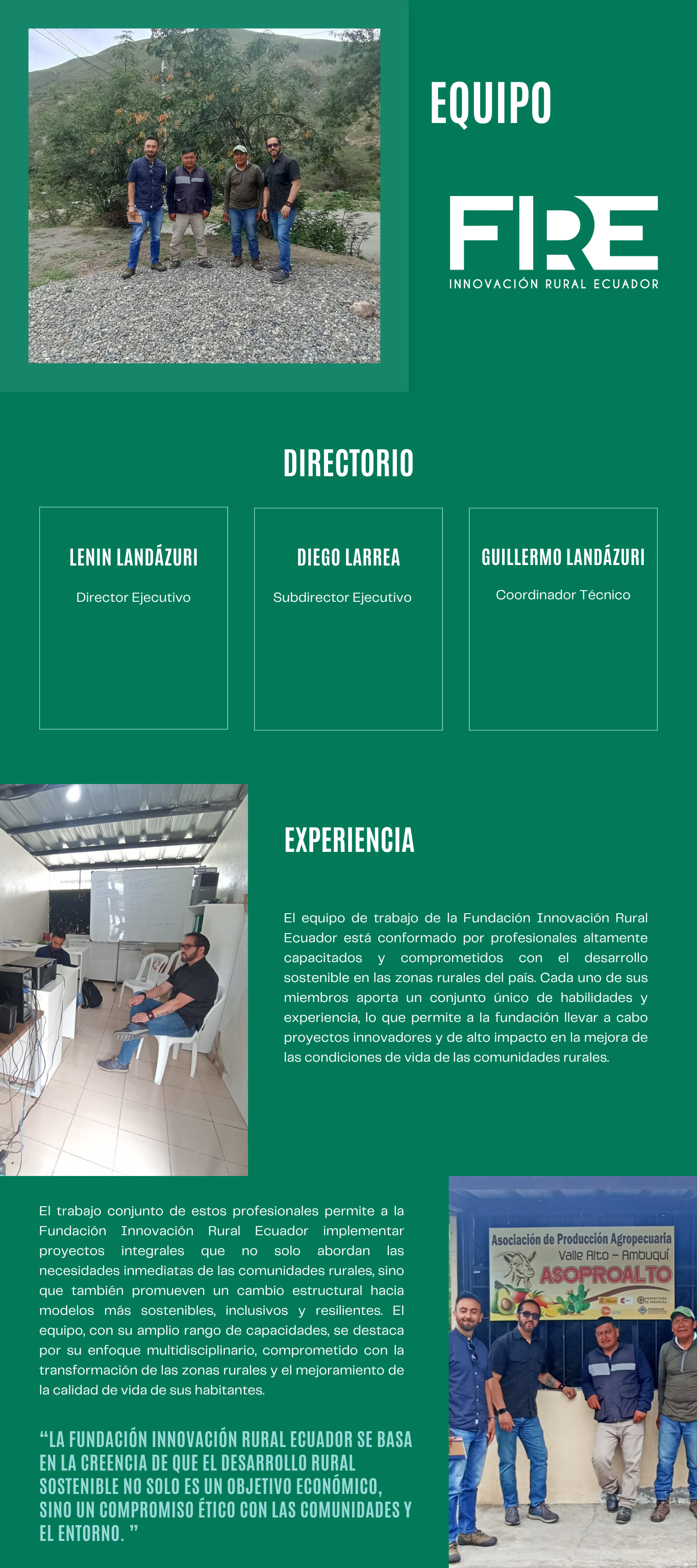 "Nuestra fundación se enfoca en diseñar, proponer, gestionar y ejecutar programas y proyectos orientados al desarrollo rural sostenible en Ecuador.